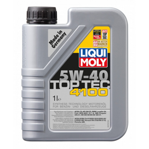 Csökkentett hamutartalmú, szintetikus motorolaj VW PdTdi motorokhoz, valamint 2000-2010-es személyautókhoz. LIMO 9510A Liqui Moly Top Tec 4100 csúcsminőségű, csúcstechnológiájú, kis súrlódású motorolaj a benzines és dízelmotoros járművekhez, dízel rész