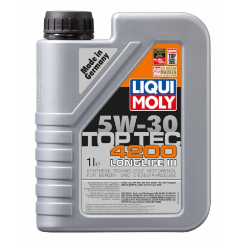 Szintetikus motorolaj a VW csoport (Audi, Porsche, Seat, Å koda, Volkswagen) személyautóihoz. A Liqui Moly Top Tec 4200 5W-30 motorolaj univerzálisan alkalmazható az Audi, BMW, Mercedes-Benz és a VW-csoport legújabb motortechnológiájához. Ez a Longlife