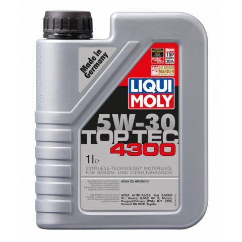 Szintetikus motorolaj Peugeot, Citroën, Honda, Toyota, Fiat személyautókhoz. LIMO 2324/3741 A Top Tec 4300 egy korszerű, csúcsminőségű, könnyű folyású motorolaj egész éves használatra.A szintetikus technológiával készült, nem szokványos alapolajok és