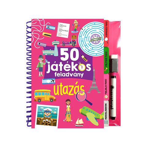 A 50 játékos feladvány – Utazás kifejezetten útra termett: rövid, fókuszált rejtvények sorozata, amelyek lekötik a figyelmet, miközben fejlesztik a gondolkodási stratégiákat és a vizuális megkülönböztetést. A kötet törekvése, hogy a mozgásban lévő napokhoz illeszkedve kínáljon kompakt, önállóan is megoldható feladatokat – akár néhány perc alatt teljesíthető oldalakat, akár kicsit elmélyültebb kihívásokat.