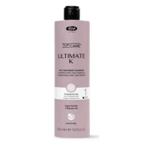 - A Lisap laboratórium legújabb kutatásainak eredménye a Lisap Ultimate K termékcsalád, az innovatív, sokoldalú, vegán, rendkívül hatékony és hosszan tartó professzionális hajvasaló kezelés, vegán keratinnal és babassu olajjal- Lisap Top Care Ultimate K előkezelő sampon megtisztítja a hajat, megnyitja a hajszerkezetet, ezzel is elősegítve a Lisap Top Care Ultimate hajegyenesítő fluid hatékonyságát