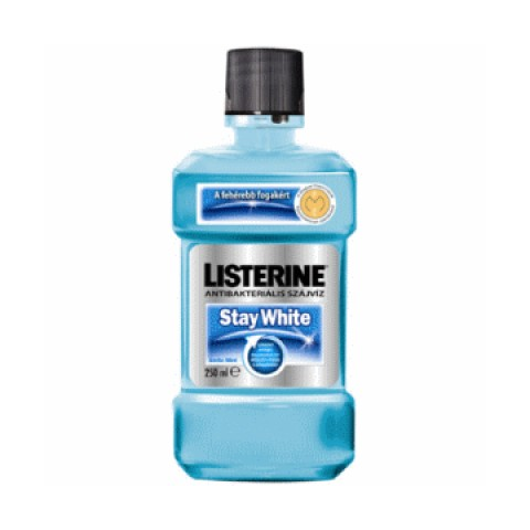 - A LISTERINE Stay White antibakteriális szájvíz illóolaj összetevőket tartalmaz: eukaliptol, timol, mentol és metil-szalicilát. Továbbá tartalmaz cink-kloridot, melynek köszönhetően megelőzi és csökkenti a fogkő kialakulását, így segít megőrizni fogai természetes fehérségét.
