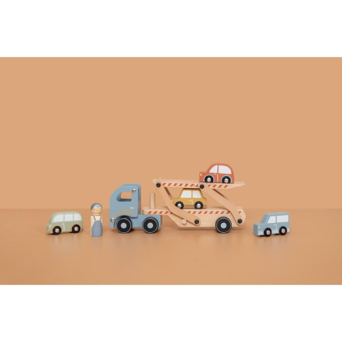 Ez a fából készült autószállító kamion nemcsak menő jármű, hanem egyben szuper fejlesztő játék is! Gyermeked imádni fogja fel- és lepakolni a kisautókat, gurítani a kamiont, és persze újra meg újra indulni a szállítmánnyal.A Little Dutch egy holland márka