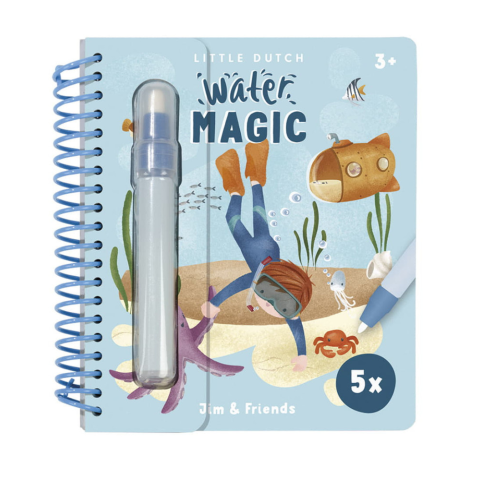 A Little Dutch vízzel színező füzet – Jim és barátai tökéletes elfoglaltság otthonra, utazáshoz vagy akár éttermi várakozáshoz is! Csak töltsd meg a kis ecsetet vízzel, és ahogy elkezditek színezni a lapokat, varázsütésre előbukkannak Jim és barátai vidám