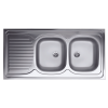 LIVINOX kétmedencés, csepptálcás, teletetős rozsdamentes acél mosogató, balos medence, 1 1/2" lefolyógarnitúrával.