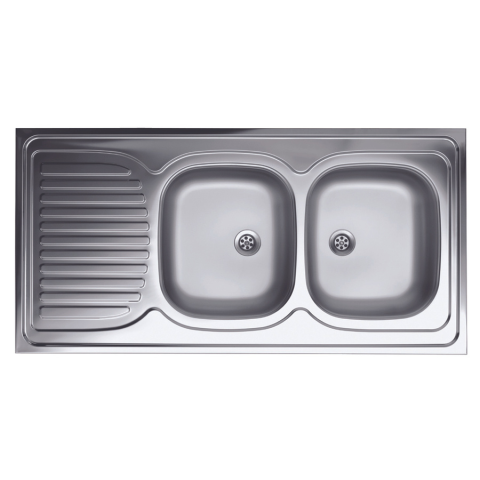 LIVINOX kétmedencés, csepptálcás, teletetős rozsdamentes acél mosogató, balos medence, 1 1/2" lefolyógarnitúrával.