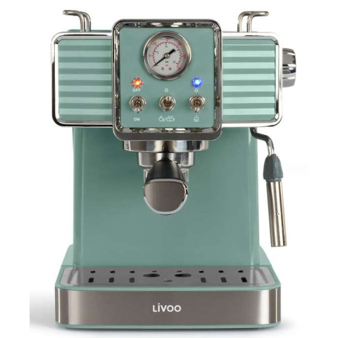 LIVOO Retro Espresszó Kávéfőző: Stílusos kávéélmény otthon ☕ Élvezze a tökéletes espressót ezzel a stílusos, retro dizájnú LIVOO kávéfőzővel! A zöld színű ház elegáns megjelenést kölcsönöz konyhájának, miközben a 15 bar nyomás garantálja a krémes, í...