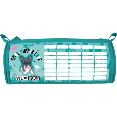 1 kép Lizzy Card Francia bulldog mintás hengeres tolltartó, órarenddel