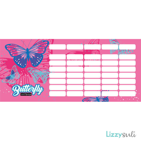 1 kép Lizzy Card Lepkés órarend mini 77x178mm, kétoldalas, Lollipop Pink Butterfly, rózsaszín