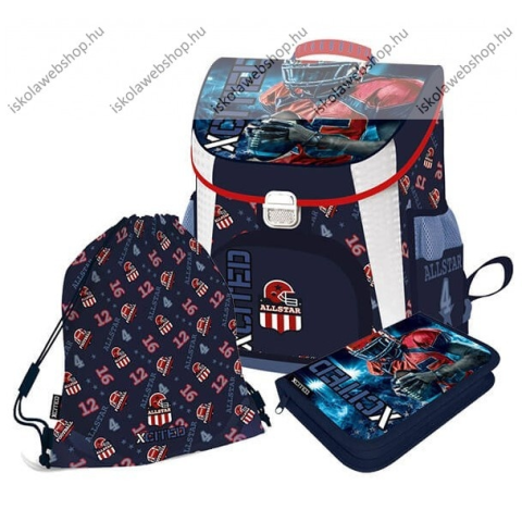 A X-cited Allstar kollekció 3 részes iskolatáska szettje. Az iskolatáska kényelmes viseletű, remek kialakítású, bírja a terhelést. Kitűnő választás elsősöknek, alsósoknak. A szett tartalma: magas minőségű, merevfalú iskolatáska ergonomikus hátkialakításs
