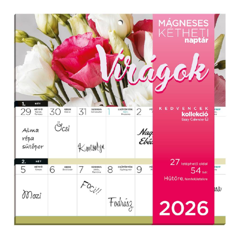 1 kép Lizzy Trade Kft. Bizományos Lizzy Hűtőmágneses naptár 2 heti 2026 Virágok