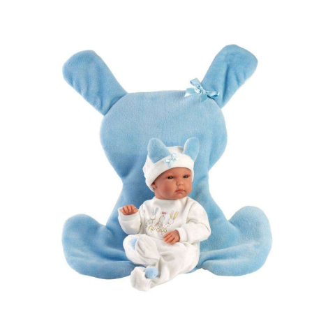 Llorens : Bimba 35cm-es baba kék nyuszis hálózsákkal