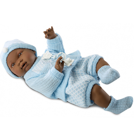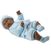 Csecsemő baba kék ruhában afroamerikai barna 45cm-es (45025)