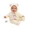 Kislányod első babáját keresed? Lepd meg őt ezzel a szuper Llorens babával, mely biztosan elnyeri majd tetszését, és kedvenc játéka lesz majd. A baba egy imádnivaló kislány, aki macis rugdalózóban érkezik, aminek kapucnija macifüleket kapott, mely még cukibbá és imádnivalóbbá teszi őt. Részletes kialakítást kapott, így nagyon élethű, végtagjai pedig a