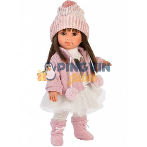 Rózsaszín kabátban, fehér színű egyberészes ruhában érkezik a kislányokhoz ez a gyönyörűen kidolgozott Sara baba, akinek kedves arckifejezése azonnal játékra csábítja a kicsiket. A nagy ezüst szívvel dekorált ruha látványos szoknyával is kiegészített, rózsaszín zoknikkal és harisnyával is teljesebbé tehetik a megjelenését. Sara baba puha textil testtel rendelkezik, kezei és