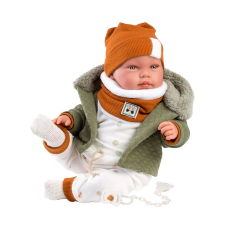 Llorens: Talo Sonrisas 42cm-es kacagó újszülött baba kapucnis kabátban