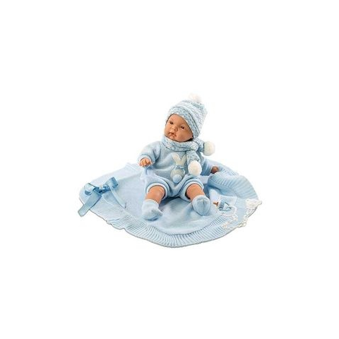 1 kép Llorens Újszülött fiú baba kék takaróval 38cm