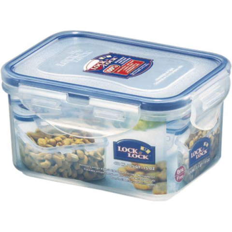 Élelmiszer tároló doboz Lock & Lock 470 ml, egymásra rakható, műanyag, BPA mentes, 100% légmentes és vízálló, mikrohullámú sütőbe max. 120 ° C és fagyasztóba max. -20° C alkalmas, minőségű szilikon tömítés, biztonsági fedél, mikrohullámú sütő melegítésnél szükséges a fedelet nyitva hagyni