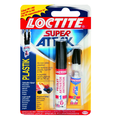 LOCTITE SUPER ATTAK PILLANATRAASZTÓ PLASTIC - kiszerelés: 2g + 4ml - minden műanyaghoz - polietilén és polipropilén ragasztásához is - ideális játékok, kisautók, lego, irodai eszközök... javítására - aktivátor toll 4ml + Plastik pillanatragasztó 2g