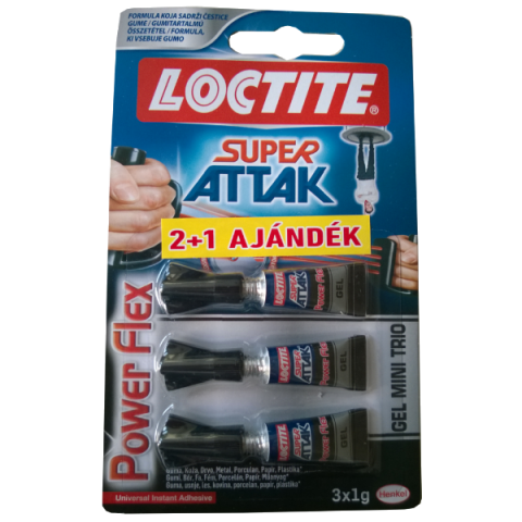 1 kép Loctite SUPER ATTAK POWER FLEX MINI TRIÓ GÉL 3X1G PILLANATRAGASZTÓ