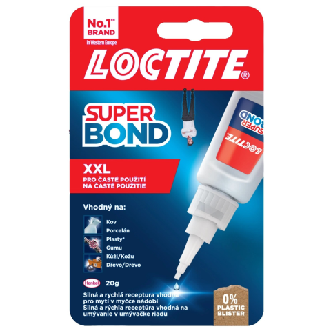A LOCTITE Super Bond XXL sokoldalú, hosszú adagolócsőrrel ellátott univerzális pillanatragasztó, amely áttetszővé szárad és hosszantartó, ütés- és időjárásálló ragasztást biztosít.