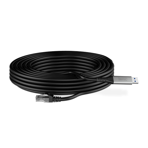 LogiLink AK-300600-150-S Összekötőkábel USB-A RJ45 1Gbps 15m fekete kábel és adapter