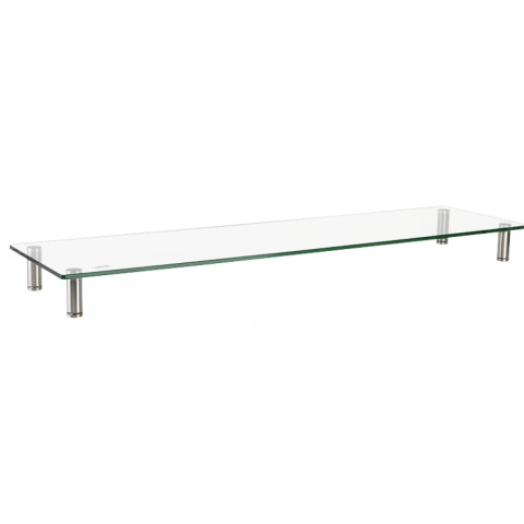 Tulajdonságok: Teherbíró képesség: Max. 20 kg Üvegvastagság: 8 mm Anyag: acél, üveg, fém Állítható magasság: 78–93 mm Tömeg: 5,45 kg Magasság: 9,3 cm Szélesség: 26 cm Hossz: 100 cm Méretek SZxMxMa: 1000x260x93 mm Teherbírás: 20 kg max. Emelje