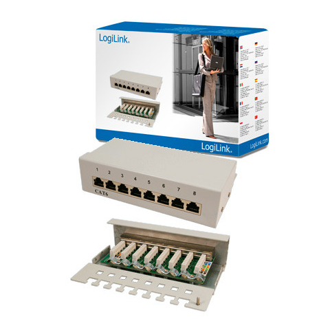 1 kép LogiLink Cat.6 Patch Panel 8 portos árnyékolt, asztali, világosszürke