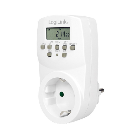 1x biztonsági aljzat Aljzat biztonsági zárral IP20 az ujjakkal vagy hasonló tárgyakkal való érintkezés elleni védelem érdekében Digitális időkapcsolás LCD kijelzőn keresztül Egyénileg programozható Min. perc beállítás: 1 perc Állítható idő: 24 óra /