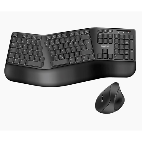 1 kép LogiLink Ergonomikus vezeték nélküli billentyűzetes egérkészlet osztott billentyűzettel, fekete (ID0211) (ID0211)