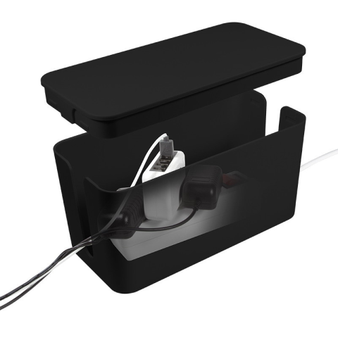 A kusza kábelek elrejtésére Műanyag doboz Nyílás mindkét oldalon kábelek számára Rendezett irodának, rendezett otthonnak Mérete: 235x115x120 mm Fekete szín Általános termékadatok: Súly: 0,335 kg Magasság: 12 cm Szélesség: 11,5 cm Hossza: 23,5