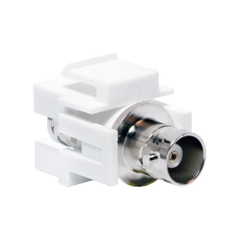 Bepattintható Keystone Modul szabványos trapéztorzító panelekhez és kimenetekhez Csatlakozások: BNC anya és BNC anya, 50 Ohm Alkalmazás: koaxiális kábelezés Anyaga: Nikkelezett érintkező, hőre lágyuló ház Méretek: 32,5 x 18 x 22,3 mm Fehér szín Ál