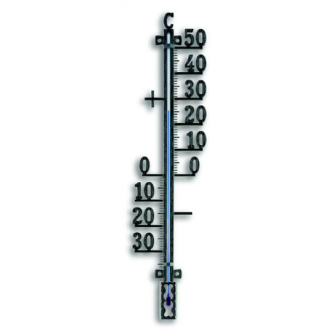 Kültérre is kihelyezhető metál fekete fém hőmérő Mérési tartomány: -35°...+50°C Környezetbarát, borszesz töltéssel. Méret:400x100mm