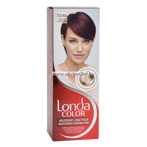 Londa Color hajfesték 55/46 (53) mahagóni A doboz tartalma: 1 tubus krémhajfesték 50ml 1 db színelőhívó folyadék 50ml 1 intenzív hajfénykiemelő pakolás 10ml 1 használati utasítás 1 pár kesztyű