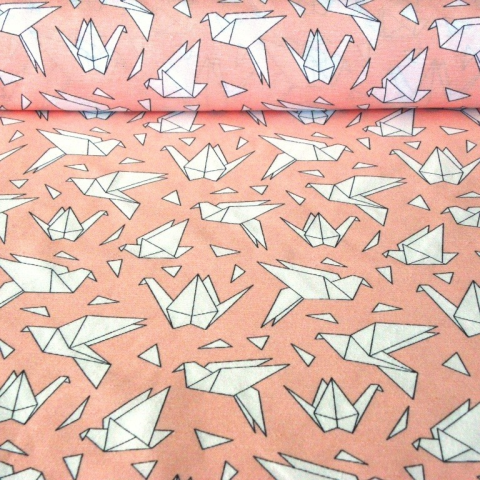 1 kép Loneta.com ORIGAMI madár mintás lakástextil, dekorvászon, korallrózsaszín
