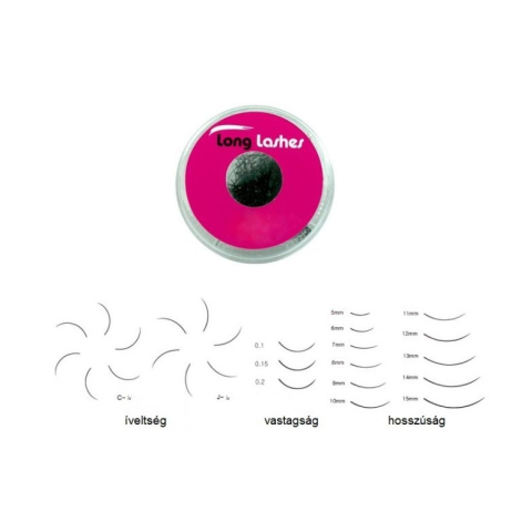 Long Lashes szempilla fekete C / 0,15 - 16mm - 0.5g LLC1151605 - Magas minőségű, szintetikus, speciálisan kifejlesztett, könnyített pillák - A csomag 0.5g (kb. 1.500 szál) szempillát tartalmaz Pilla íveltsége: C -ív (extravagáns íveltség) Pilla vastagsága