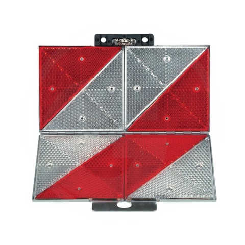 Balra mutató, merev Alumínium Prizmás fényvisszaverők Felszerelés: Rögzítőlap által, vagy a sarokösszekötő hosszúkás furatánál egy rugós biztosítószeggel rögzíthető Méretek (mm): 285 x 285 Anyaga: Horganyzott lemez Balra mutató, merev Alumínium Prizmás