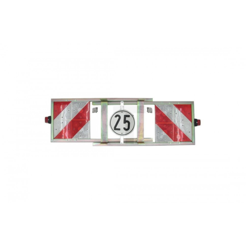 A keret 24 x 22 x 24 x 2 mm-es horganyzott U-profilból, típusjóváhagyással rendelkező, B alakú 282 x 282 mm-es elülső és hátsó figyelmeztető táblával, helyzetjelzőkkel, elöl fehér, hátul piros, csatlakozókábel 2 pólusú csatlakozódugóval és 2 pólusú dugalj