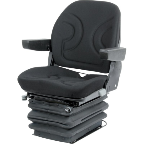Automatikus súlyés magasságállítás 12v légrugózás Lehajtható kartámasz Fekete szövet huzat Súlyállítás 50 kg-tól 130 kg -ig Hosszirányú állítás 210 mm Háttámlák dőlésszög állítás Ülésszélesség 470 mm Össz. Szélesség 595 mm Állítható háttámla Vízszintes fe