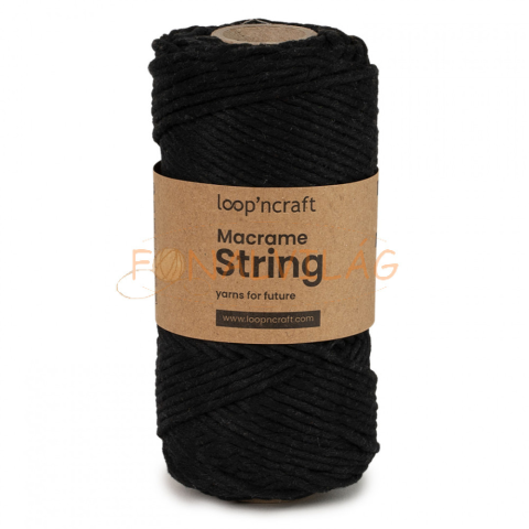 1 kép Loop'ncraft Macrame String (Kifésülhető), 3mm - Fekete