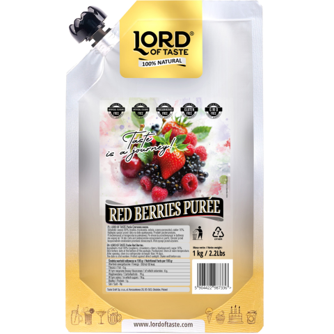 A Lord of Taste piros gyümölcsös püré egyedülálló, prémium minőségű gyümölcskészítmény, amely válogatott málnát, epret, meggyet és feketeribizlit tartalmaz. 100%-ban TermészetesA termék teljes mértékben természetes, mesterséges aromák, színezékek, tart