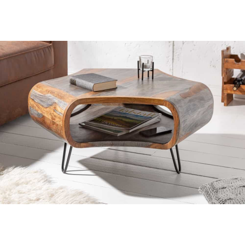 Design dohányzóasztal Lorelei 80 cm szürke sheesham Ezzel a különleges dohányzóasztallal egy igazi kedvenc darab költözik az otthonodba. Az asztallap masszív sheesham fából kész