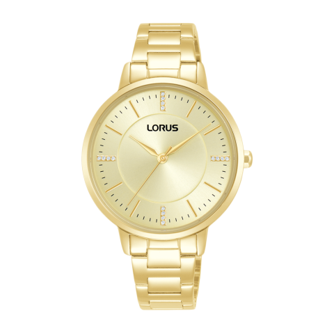 Gyártó: LORUS, Kollekció: Women, Típus: Női, Szín: Arany, Anyag: Nemesacél óraszíj sárga arany bevonattal, Vízállóság: 5 bar, Óraszerkezet: Kvarc, Kijelző típusa: Analóg kvarc, Óratok alakja: Kerek, Óratok mérete: 34 mm