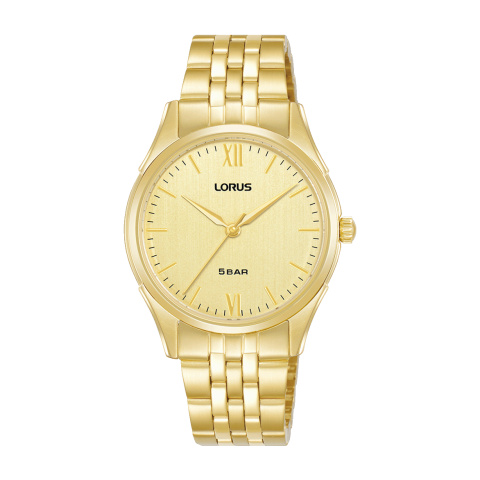 Gyártó: LORUS, Kollekció: Classic, Típus: Női, Szín: Arany, Anyag: Nemesacél óraszíj sárga arany bevonattal, Vízállóság: 5 bar, Óraszerkezet: Kvarc, Kijelző típusa: Analóg kvarc, Óratok alakja: Kerek, Óratok mérete: 32 mm