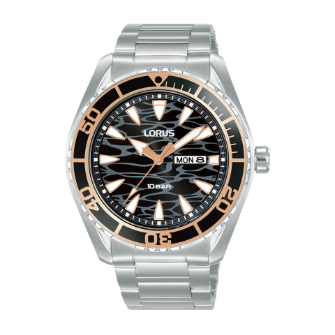 Gyártó: LORUS, Kollekció: Sports, Típus: Férfi, Szín: Sötét, Anyag: Nemesacél óraszíj, Vízállóság: 10 bar, Óraszerkezet: Kvarc, Kijelző típusa: Analóg kvarc, Óratok alakja: Kerek, Óratok mérete: 43 mm