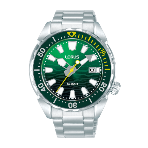 Gyártó: LORUS, Kollekció: Sports, Típus: Férfi, Szín: Színes, Anyag: Nemesacél óraszíj, Vízállóság: 10 bar, Óraszerkezet: Kvarc, Kijelző típusa: Analóg kvarc, Óratok alakja: Kerek, Óratok mérete: 41 mm