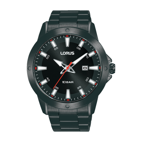 Gyártó: LORUS, Kollekció: Sports, Típus: Férfi, Szín: Sötét, Anyag: Nemesacél óraszíj titánkarbid bevonattal, Vízállóság: 10 bar, Óraszerkezet: Kvarc, Kijelző típusa: Analóg kvarc, Óratok alakja: Kerek, Óratok mérete: 44 mm