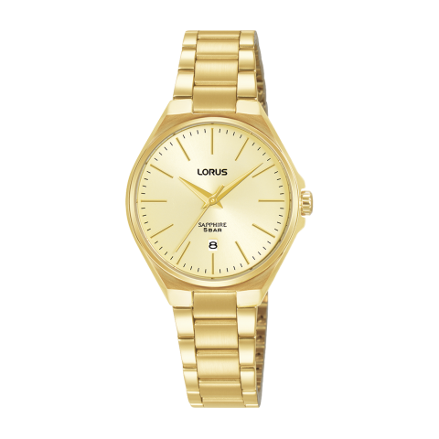 Gyártó: LORUS, Kollekció: Dress, Típus: Női, Szín: Arany, Anyag: Nemesacél óraszíj sárga arany bevonattal, Vízállóság: 5 bar, Óraszerkezet: Kvarc, Kijelző típusa: Analóg kvarc, Óratok alakja: Kerek, Óratok mérete: 28 mm