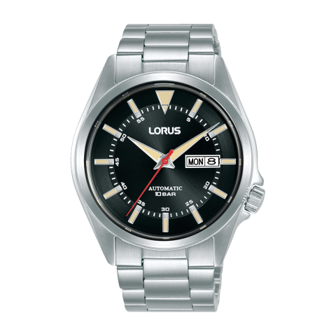 Gyártó: LORUS, Kollekció: Sports, Típus: Férfi, Szín: Sötét, Anyag: Nemesacél óraszíj, Vízállóság: 10 bar, Óraszerkezet: Mechanikus automata, Kijelző típusa: Mechanikus automata, Óratok alakja: Kerek, Óratok mérete: 42 mm