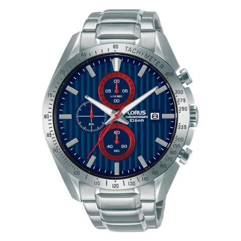 Gyártó: LORUS, Kollekció: Sports, Típus: Férfi, Szín: Színes, Anyag: Nemesacél óraszíj, Vízállóság: 10 bar, Óraszerkezet: Kvarc, Kijelző típusa: Chronograph, Óratok alakja: Kerek, Óratok mérete: 45 mm